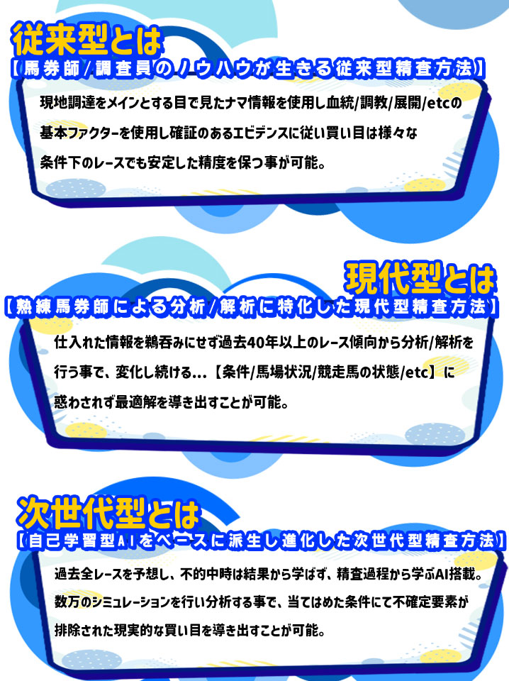 予想に型があるようで「従来型」「現代型」「次世代型」の3つの型があってそれを駆使しているようです。