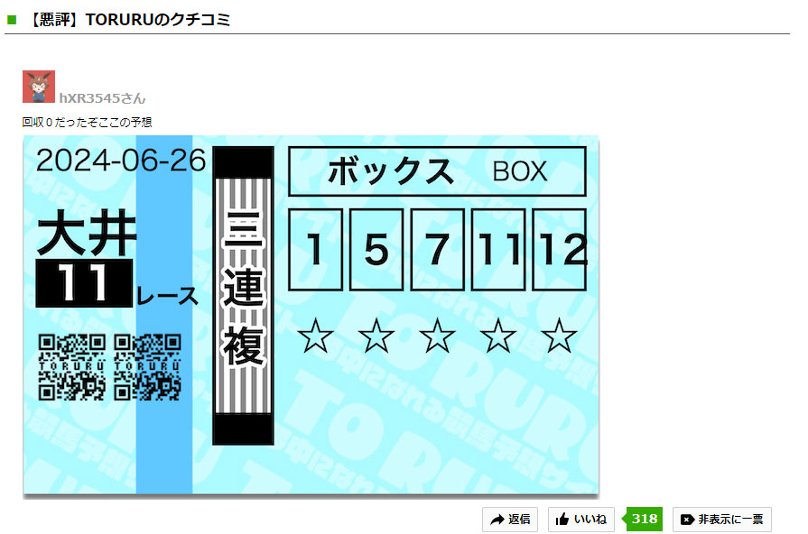 今回【TORURU】の情報に2日間参加してみましたが、両日とも残念ながらトリガミと不的中でプラスになる買い目は1つもなく、
