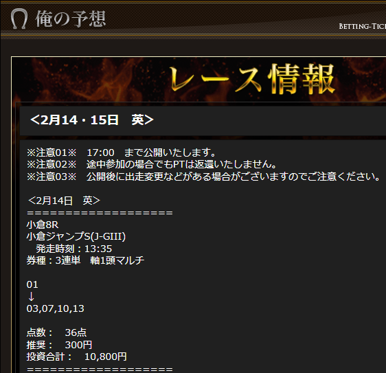 驚いたのは13日の無料予想です。