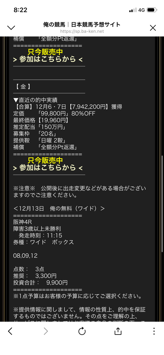 12月一発目の無料予想でも3連単万馬券当ててましたよ、結構参考にしてるサイトです。