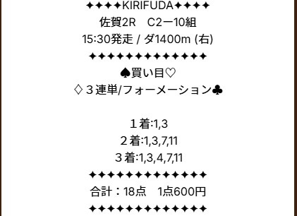 1068.7倍地方競馬で当たりました!これが買い目画像です 初めて仕事の合間に地方競馬やったけどめっちゃ稼げるって知りませんでした この調子でキリフダを利用して平日毎日やろうと思います