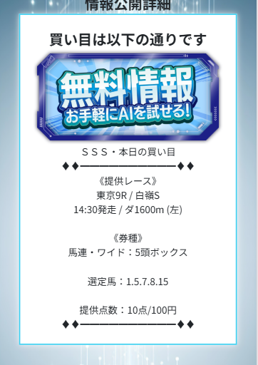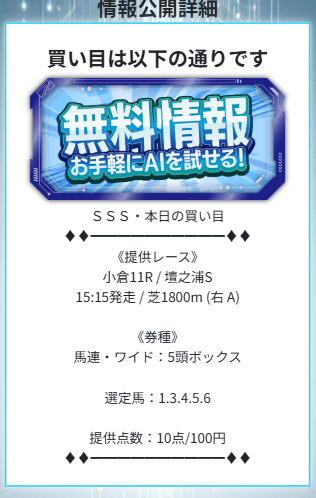 まだ無料予想しか使ってないけど1着①12番人気見抜いたのすごっ