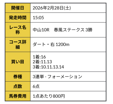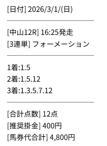 買い目画像もPAT画像もスクショ撮り忘れてしまったけど